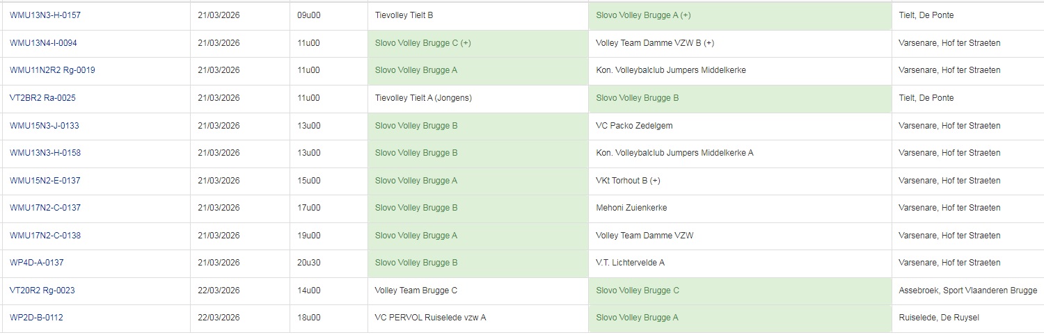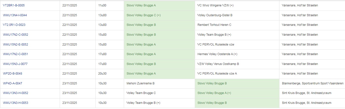 van alle ploegen van Slovo vind je bij: Als je alle ploegen in Vlaanderen wil hebben ga dan naar: www.volleyscores.be |