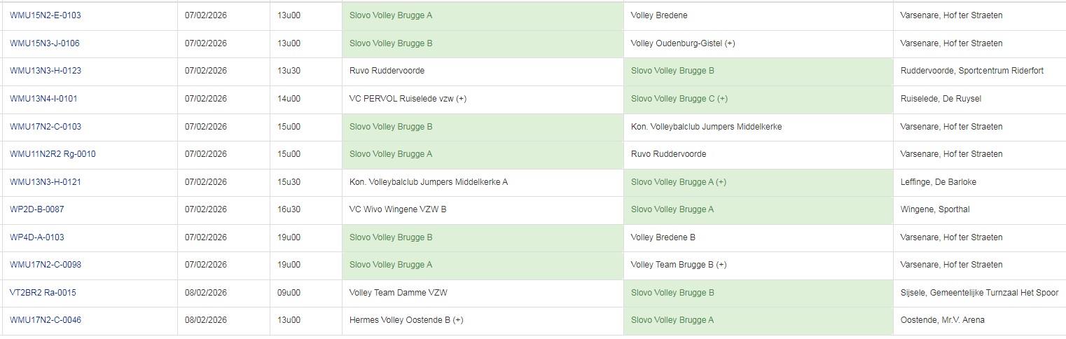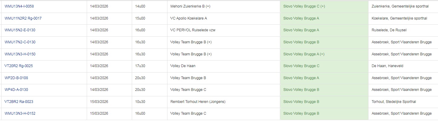 van alle ploegen van Slovo vind je bij: Als je alle ploegen in Vlaanderen wil hebben ga dan naar: www.volleyscores.be |
